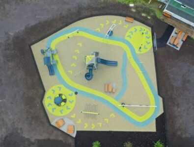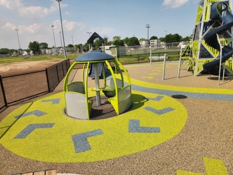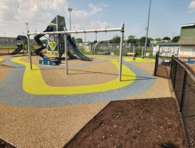PlayBound was installed by Playsafe Surfacing and features a 2-layer system, comprised of a basemat made from 100 percent post-consumer recycled Styrene Butadiene Rubber (SBR) and polyurethane and a top surface consisting of recycled post-industrial Ethylene Propylene Diene Monomer (EPDM) rubber or TPV Granule and aromatic or aliphatic urethane binder. Surface America uses an industry-leading percentage of material in its top surface, significantly increasing the surface’s expected life. PlayBound is also IPEMA certified to meet critical fall heights up to 13 feet per ASTM F-1292; so, if a child falls off a piece of equipment, they are protected.