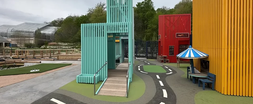 The idea for Lauritzen Gardens, located in Omaha, Neb., began more than 30 years ago. Today this botanical center consists of 100 acres of annual and perennial flowers, a four-acre arboretum and bird sanctuary, a meadow reminiscent of Nebraska’s prairies, and many gardens, including the Festival, English, Victorian, Rose, Japanese, Woodland, and Model Railroad. Lauritzen Gardens also includes Sofia’s Play Garden, a hands-on play and educational space for children that features PlayBound Poured-in-Place surfacing.